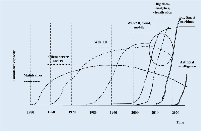 At the risk of oversimplifying, we could think about four key phases of the industrial revolution : Mechanical => Production => Communication => Information