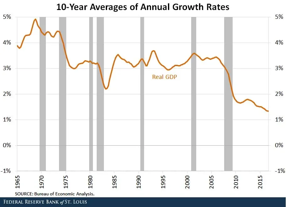 Global GDP growth has fallen from 4% to 2%, that's the difference between living standards doubling every 18 years versus every 35 years.